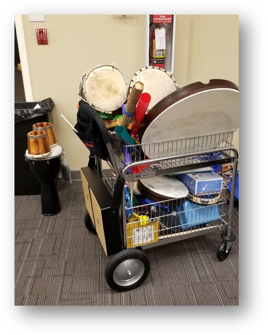 Music Care Kits can be used individually or shared across teams, units, or departments. When built collaboratively, they expand possibilities and strengthen a music-rich culture of care. You can store components of the kit on a cart, or a bin, or a rolling container or dedicated drawers or shelves.